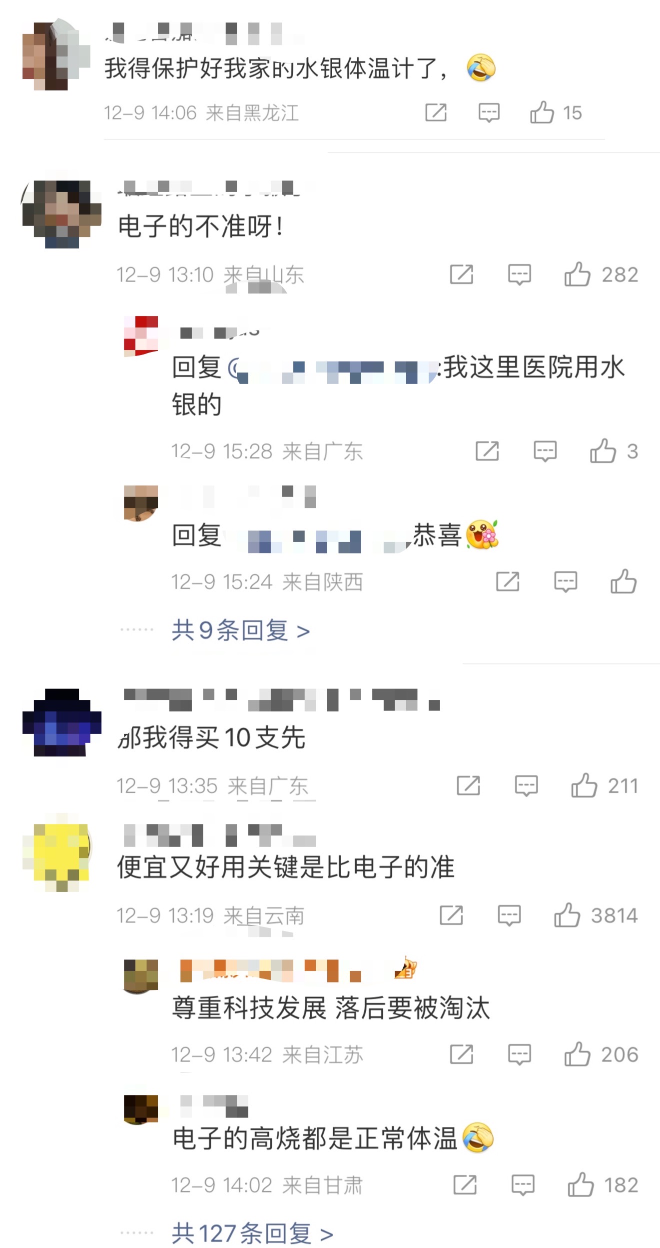 除了价钱相反,环球对水银体温计和电子体温计的使用体验也不尽交流。不少网友暗示亲测后嗅觉“电子的不准”,也有东谈主暗示依然更民风“低廉又好用”的水银体温计。